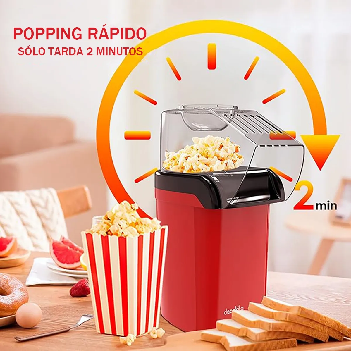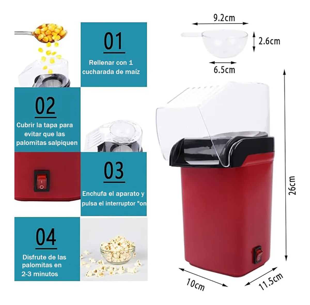 Características: La palomitera Y aire sin aceite tiene una tapa y un vaso extraíbles. Debido a que se hace estallar con aire caliente, es fácil Y limpiar, sólo limpie el fabricante Y palomitas Y maíz en casa con un paño húmedo y séquelo. La palomitera Y aire caliente hace que sus envíos Y palomitas sean más altos y más prácticos (No necesita aceite).